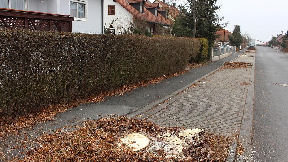 In Wachenroth wurden neun Lindenbäume gefällt. Die Bäume seien dafür verantwortlich gewesen, dass der Belag des Gehsteiges aufgebrochen ist.