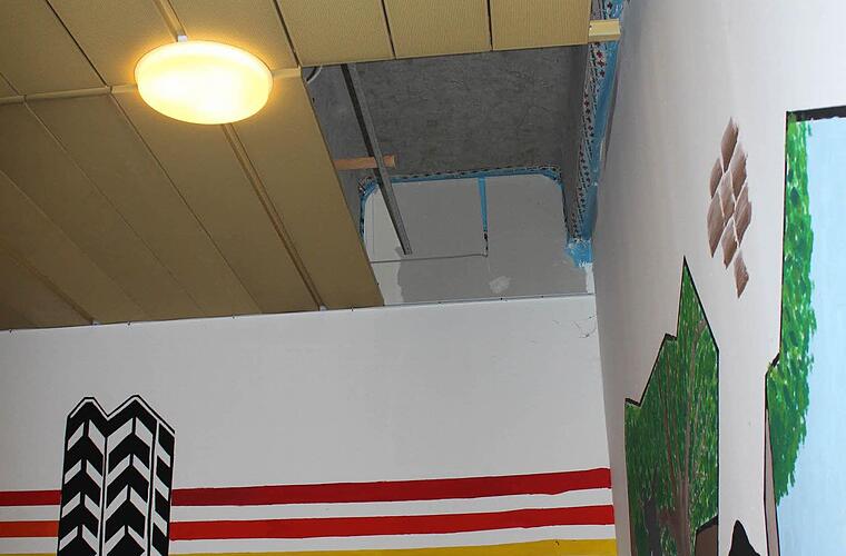 In der Aula des Höchstadter Gymnasiums löste sich ein Element der Deckenverkleidung und verletzte eine Schülerin leicht. Die Polizei vermutet einen Zusammenhang mit den Arbeiten am angrenzenden Ersatzneubau.