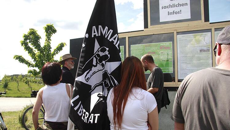 Schon eine Stunde vor dem angekündigten Protest hielten immer wieder Autofahrer und Radler an der großen neu errichteten Informationstafel an. Dort stand Schenk Senior, der Vater des Betreibers der Biogasanlage und Bauherr des geplanten Rinderstalles, Rede und Antwort. Auf die Frage "Warum wurde die unübersehbare Information erst jetzt aufgebaut, das hätte doch schon vor Wochen gemacht werden müssen?", kam die Antwort "Wir wollen keine Schlammschlacht, sondern sachlich informieren".