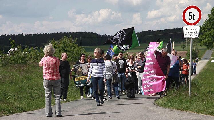 Am Samstag formierte sich ein von der "Bürgerinitiative gegen die Rindermastanlage bei Kairlindach" initiierter Zug.