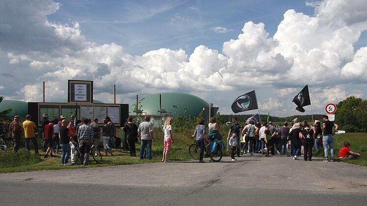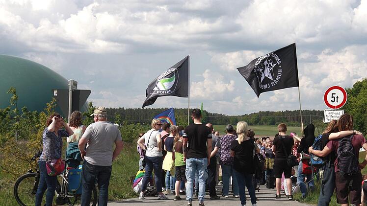 Man zog mit viel Lärm und Polizeibegleitung zur Biogasanlage, um dort noch mal die Forderungen zu formulieren. Dazu holte sich die Bürgerinitiative auch reichlich Unterstützung von außen und verschiedene Organisation des Tierwohls und Tierschutzes kamen in den Weisendorfer Ortsteil.