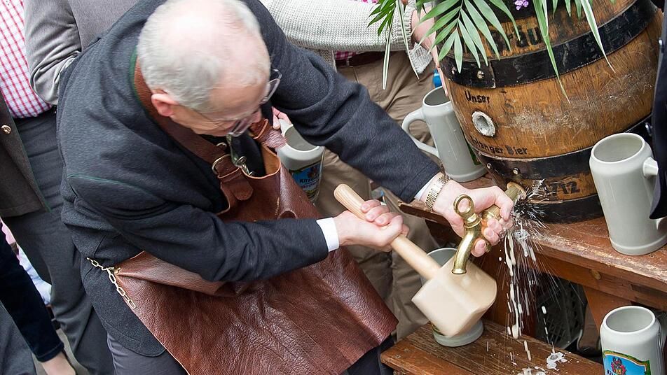 Am Donnerstag, bei der offiziellen Eröffnung, war allerdings Innenminister Joachim Herrmann dabei. Das Zepter, respektive den Hammer, ließ sich Oberbürgermeister Siegfried Balleis allerdings nicht aus der Hand nehmen - nicht mal vom Innenminister, der immerhin aus Erlangen stammt. Denn es ist Brauch, dass das Stadtoberhaupt das erste Fass Bier anzapft. Ebenso guter Brauch ist es, dass dieses Bier frei an die durstigen Kehlen ausgegeben wird.