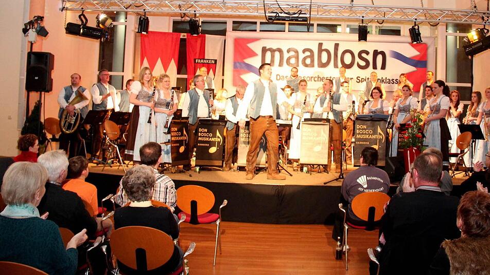 Fetzige Marschmusik und böhmische Kultpolkas wechselten sich beim böhmischen Blasmusikabend der Don Bosco Musikanten mit der Band "maablosn" im Forum in Gremsdorf ab.