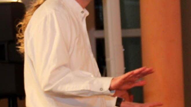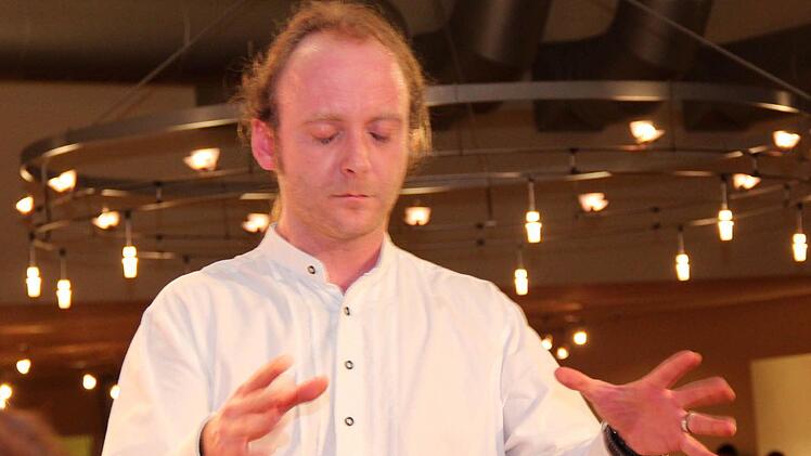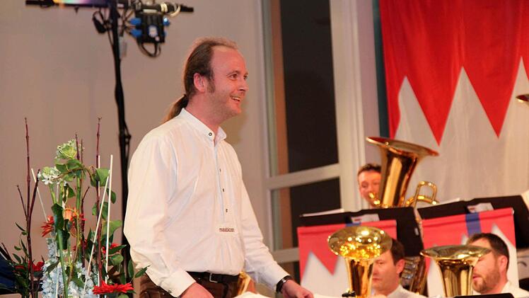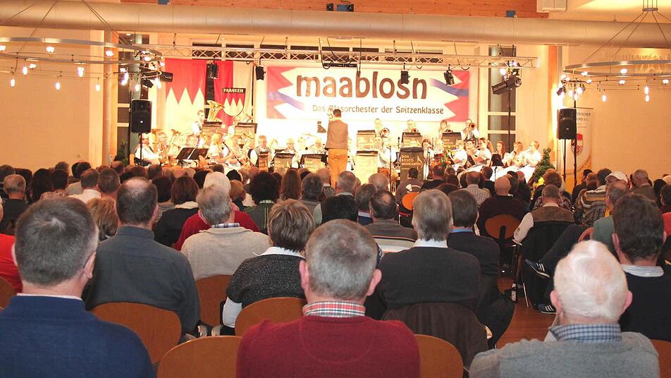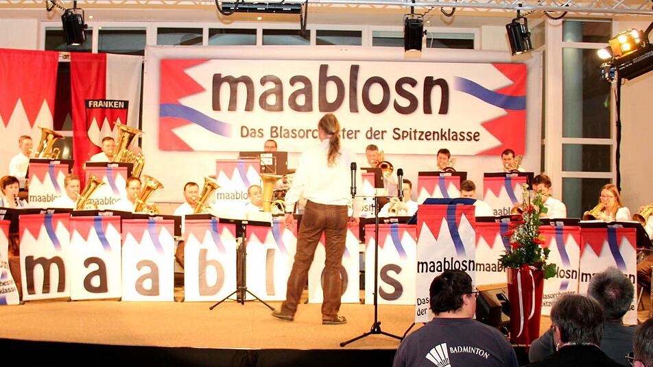 Die 20 Mann der Band "maablosn" kamen nach der Pause auf die Bühne - in original böhmischer Besetzung - und sofort sprang der Funke auf das Publikum über. Der Dirigent Kornel Hetterich verbreitete eine Lebensfreude, sein ganzer Körper sprühte förmlich vor Musikbegeisterung und immer wieder feuerte er seine Musikanten auf der Bühne an. Es war eine Freude, ihn zu beobachten. Hetterich spielt auch in der bekannten fränkischen Boygroup "häisd'n'daisd" als Klarinettist mit.