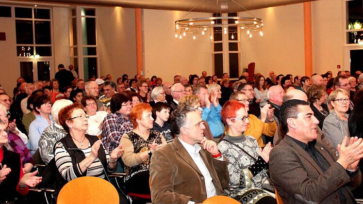 Die Löffelpolka mit dem Schlagzeuger Peter Jungkunst "an den Löffeln", ging allen ins Blut. Der fränkische Biermarsch, wieder gesungen von Gisela und Thomas, sei schon zur heimlichen Bierhymne Frankens geworden, verriet der Moderator. Der zehnjährige Linus aus Adelsdorf war unter den begeisterten Zuhörern. Er hat die Konzertkarte zu seinem Geburtstag bekommen. "Ich hab heute Geburtstag", verriet er strahlend. " Und ich selber spiele erstes Tenorhorn beim Musikverein Zeckern", fuhr er fort. Ihm gefiel, wie vielen anderen, "Der einsame Hirte", ein Musikstück, dessen Melodie ursprünglich für Panflöte gesetzt ist.