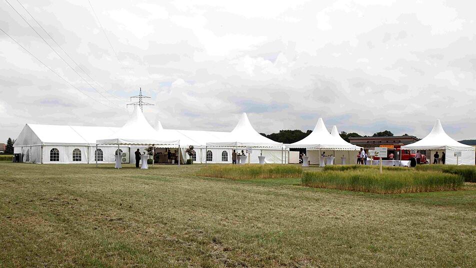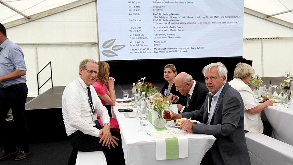 Extra zum Jubiläum waren vor dem Festzelt Kulturen mit Winter- und Sommergerste sowie Winterweizen angelegt worden. Bei einer Bierverkostung konnten sich die Gäste auch vom Ergebnis einer guten Braugerste überzeugen.