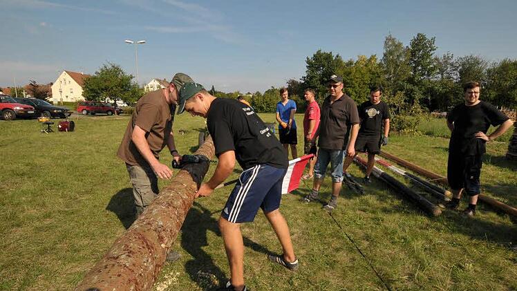 Am Schluss steht der Baum doch Die jahrelange Erfahrung von Dieter machte sich jetzt bemerkbar. Mit ruhigen Kommandos dauerte es nur gut eine halbe Stunde und der 29 Meter lange Kirchweihbaum stand senkrecht. Bereits vor den Ortsburschen hatte der 15-köpfige Nachwuchs unter der Leitung von Baptist Winkelmann seinen Kirchweihbaum aufgestellt. Traditionell wird in Hannberg am Kerwa-Sonntag auch wieder der Betz ausgetanzt.