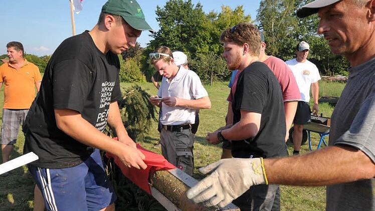 Kurzerhand entschlossen sich die Ortsburschen und ihre Helfer die Spitze vor Ort zu reparieren. Dazu wurden stabile Winkeleisen verwendet, die nach der schweißtreibenden Arbeit dafür sorgten, dass der Baum in einem Stück aufgestellt werden konnte. Dass sich der Termin wegen der Reparaturarbeiten an der Spitze um gut eine Stunde verschoben hatte, daran störten sich die anwesenden Schaulustigen nicht im Geringsten.