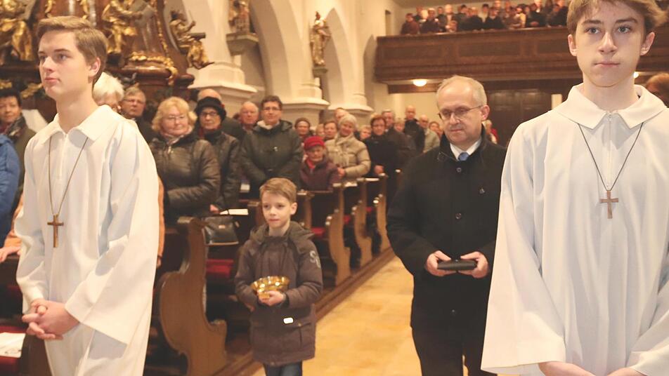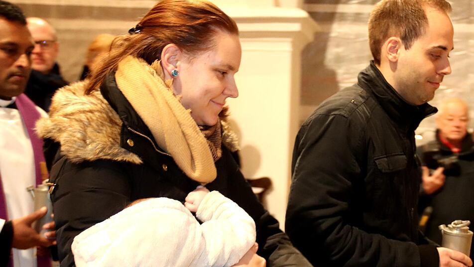 Draußen vor dem Gotteshaus verteilten die Ministranten das Licht von Bethlehem, das die Georgspfadfinder vor kurzem aus Nürnberg geholt hatten.