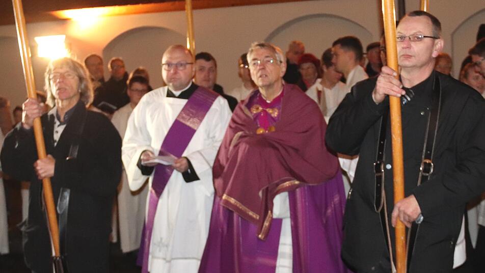 "Heute wird Christus wieder in Brotsgestalt in den Tabernakel eingesetzt. Das erfüllt uns mit großer Freude!", eröffnete Erzbischof Ludwig Schick den Gottesdienst. Ein langer Zug mit Gläubigen und Ministranten bewegte sich singend unter Begleitung der Höchstadter Stadtkapelle durch die Straßen zur Georgskirche.