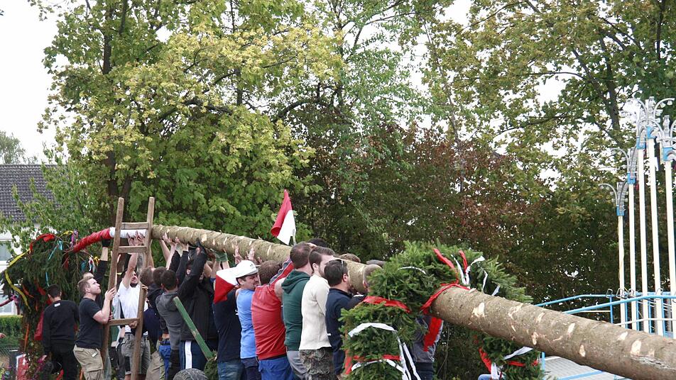Aus dem Wald wurde er stilgerecht mit der Pferdekutsche von Herbert Müller zum Festplatz gefahren. Der Baum verlangte den Ortsburschen einiges ab. Um das gute Stück in die Senkrechte zu hieven, hieß es für Ober-Ortsbursche Sebastian Denk alle Kräfte zu bündeln. Sorgfältig setzten die Burschen die Schwalben an und prüften immer wieder, ob der Baum richtig in die Betonrinne gleitet. "Ein schöner Baum, schön schlank, ein Prachtexemplar", so die einhellige Meinung der zahlreichen Zuschauer. Nach rund eineinhalb Stunden stand der Baum in der Mitte des Tanzplatzes, auf dem die Burschen mit ihren Mädchen heute um 18 Uhr den Betz'n raustanzen. Anschließend schlagen sie wieder den Geeger raus und es spielt "Six to Real" zum Ausklang.
