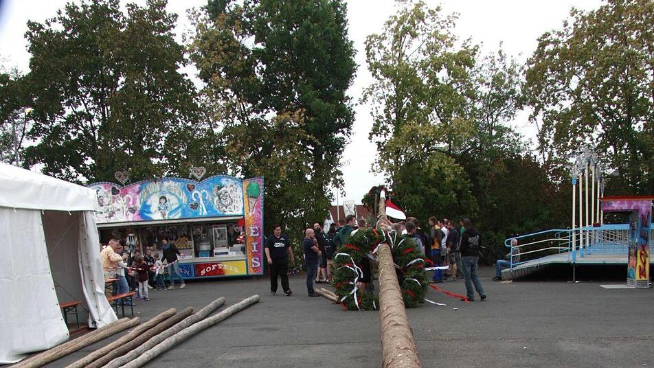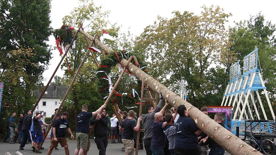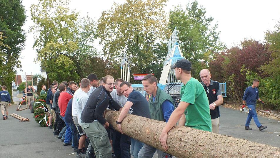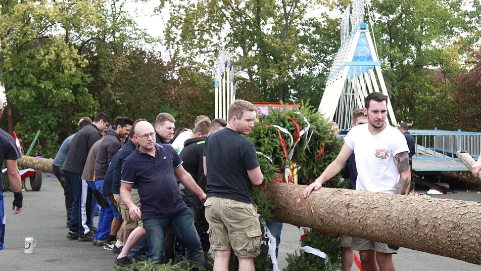 Die Großenseebacher Burschen mussten sich mit einem 34 Meter hoher Kerwasbaum herumschlagen.