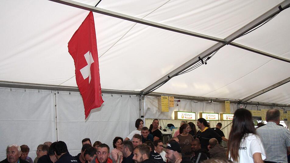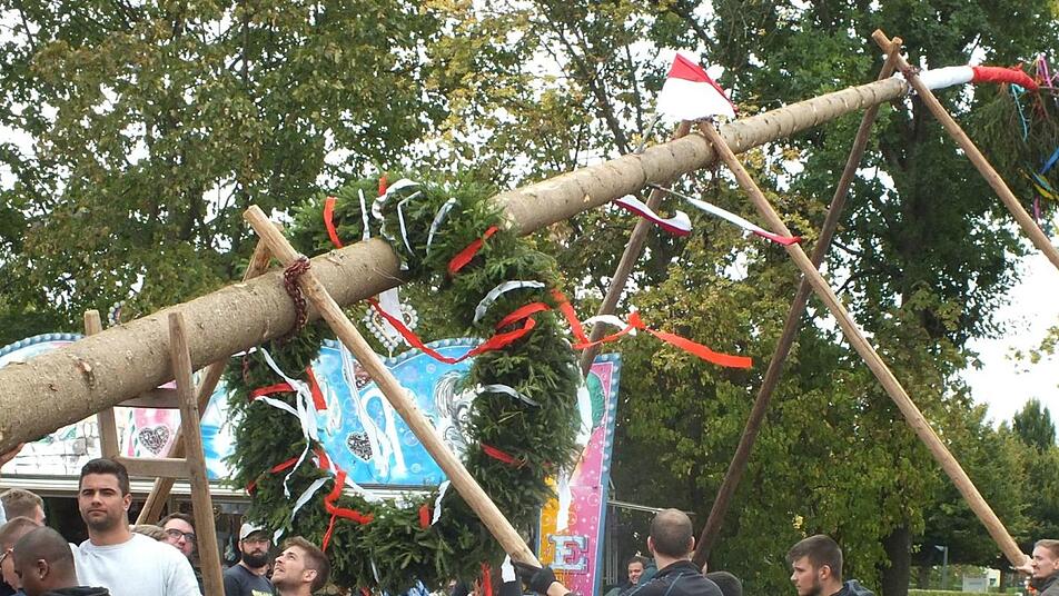 Am Samstag waren die Burschen dann beim Aufstellen des mit 34 Metern höchsten Kerwabaums im Seebachgrund gefordert, an dessen Spitze zudem keine fränkische Fahne sondern eine Flagge mit dem Wappen der Schweiz flatterte.