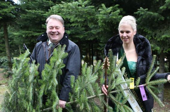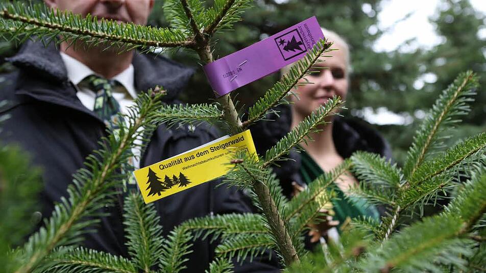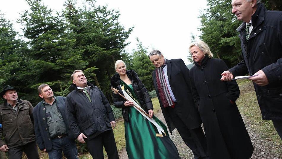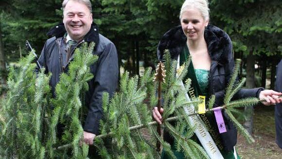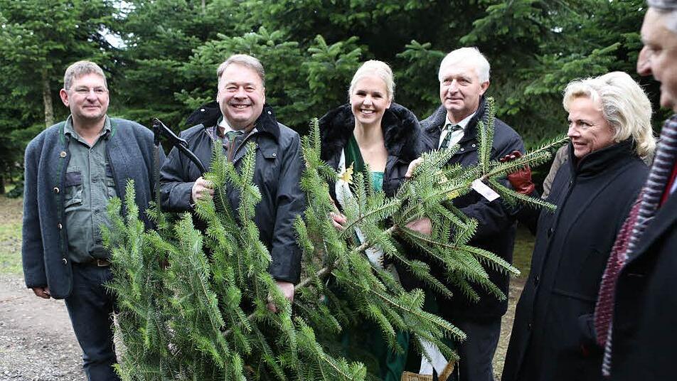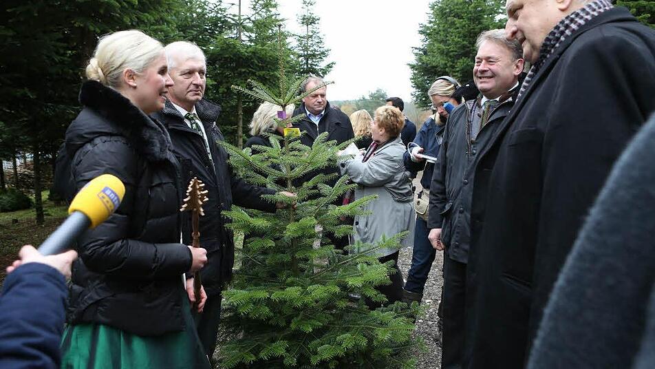 Bayerns Landwirtschaftsminister Helmut Brunner und die Deutsche Christbaumkönigin Katharina Püning eröffneten im Wachenrother Ortsteil Oberalbach die Christbaumsaison und warben für Bäume aus der Region.