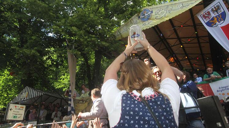 Mit zwei Schlägen bewies er, dass er der Aufgabe gewachsen war. "Die 259. Bergkirchweih ist hiermit eröffnet", rief er den Bergfans zu, die hofften, einige Tropfen des kostenfreien goldenen Gerstensaftes zu ergattern. Der Berg hat nun bis zum 16. Juni jeweils ab 10 Uhr geöffnet. An den Sonn- und Feiertagen geht es bereits um 9.30 Uhr los. Die Erlanger Bergkirchweih gehört zu den schönsten "Open-Air-Bierfesten" Bayerns.