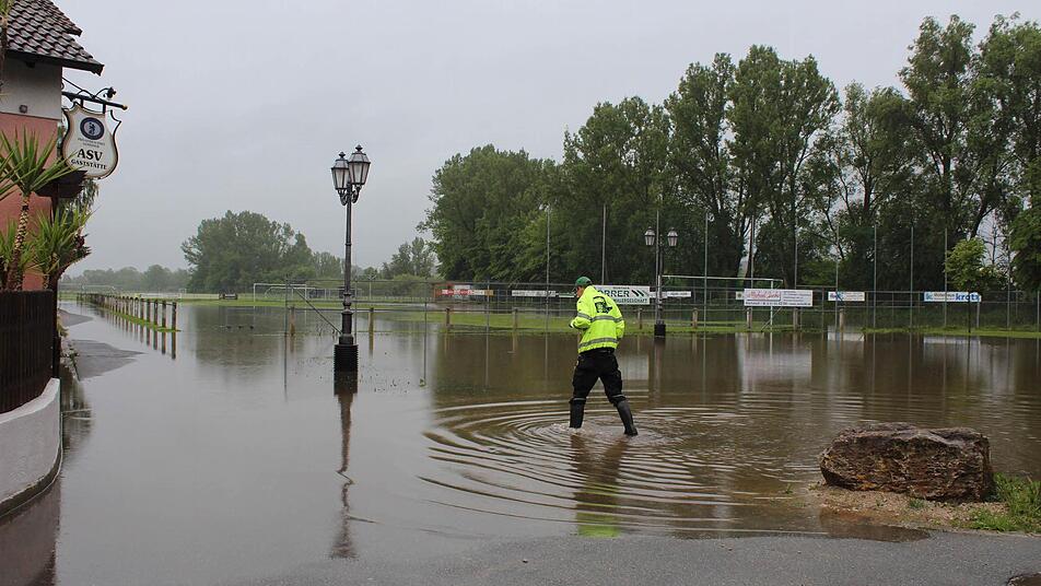 Die Überflutungen hielten sich im Aischtal im Raum Höchstadt in den gewohnten Grenzen. Bei Gremsdorf blieben zwei Autos in den Fluten stecken.