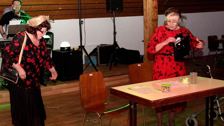 Deftige Sketche von "Die Zwaa"  "Die Zwaa" aus Neuhaus, Gabi Birkner und Pauline Sitte, wussten als alte Ratschkattln den neuesten Klatsch und Tratsch. Mit ihren Witzen brachten die beiden die Zuhörer zum Lachen. Stolz zeigte Gabi auf ihre neuen Schuhe. "Die hab ich bei Ikea gekauft - muss mer aber selber zambaun." Eine Pointe folgte auf die andere. Manche war für einen Pfarrball wohl etwas zu deftig und derb geraten.
