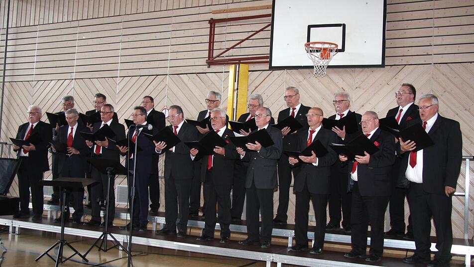 Ein Höhepunkt des Nachmittags mit den bunten Chorbeiträgen waren die Uraufführung des Liebesliederzyklus von Ehrenchorleiter Manfred Maier. Der Komponist hatte mit "Die Eine" die vier Gedichte "Du bist wie eine Blume", "Hast du die Lippen mir wund geküsst", "Sie liebten sich beide" und "Die Rose und die Lilie" von Heinrich Heine vertont. Vorgetragen wurde der Zyklus vom Gastchor aus Ottensoos.