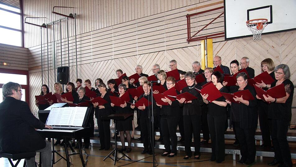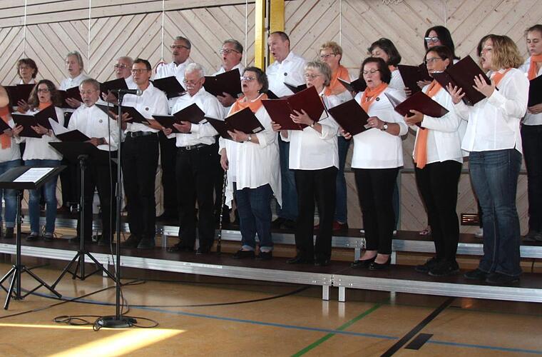 Einen Abschied und eine Uraufführung erlebten die Gäste des Gemeinschaftskonzerts der Aurach-Sängergruppe am Sonntagnachmittag in Weisendorf. Unter dem Motto "Mit Lieb' bin ich umfangen" hatte die Gruppenvorsitzende Emilie Meier zum letzten Mal das Konzert organisiert. "Ich freue mich, dass die Chöre spontan zu meinem letzten Konzert zusagten", meinte sie etwas gerührt. Der Abschied von Emilie Meier nach 28 Jahren war für die Chöre und Besucher in der überfüllten Sporthalle die Überraschung des Nachmittags.