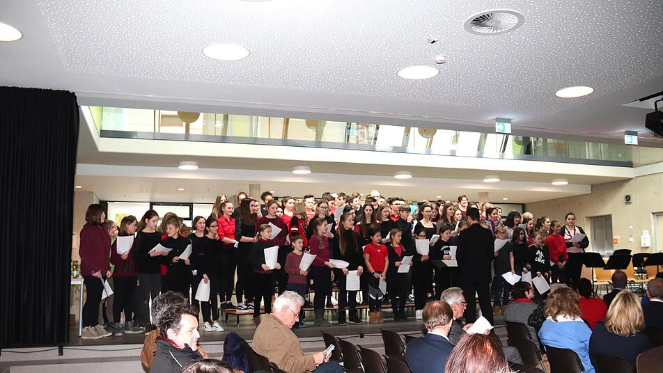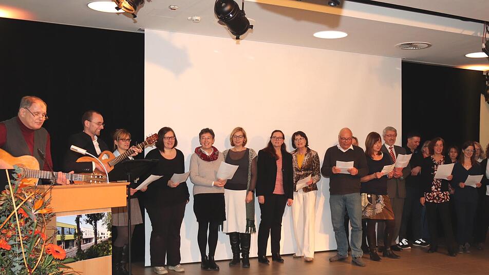 Der Last Minute Chor sorgte für ein musikalisches Intermezzo mit dem Song: "Schön war die Zeit" und schloss mit "Arrivederci Bernd!" Erek Mennecke, der Verbindungslehrer nach Krasnogorsk, zeigte zusammen mit Hedi Wedel und Michael Wirth (Martin Bauer Group) in einem Film Grüße aus Opalicha, der Partnerschule Höchstadts. Großer Chor, Vokalensemble und Unterstufenchor (Leitung. Georg Schlee) erwiesen mit "Imagine" von John Lennon und dem kurzweiligen Lied "Wer hat an der Uhr gedreht?" (Bandarrangement Florian Kager) dem scheidenden Schulleiter singend und musizierend ihre Ehre.