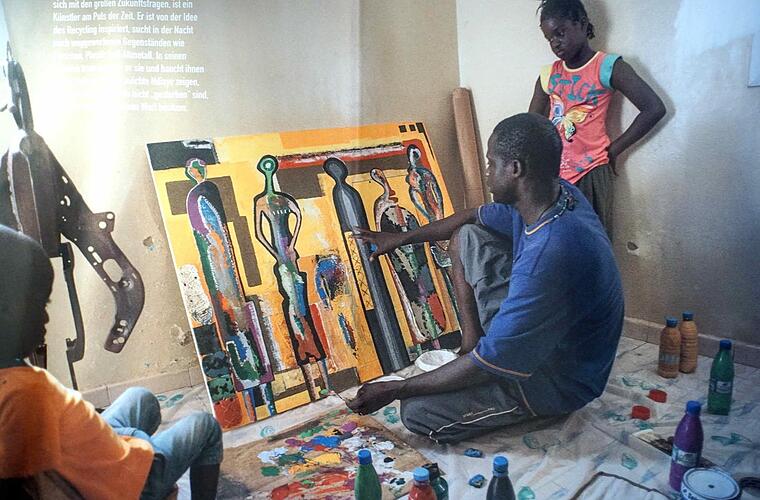 Acht Künstler aus dem Senegal nahmen bewegende Themen ihrer Heimat in den künstlerischen Fokus: das traditionelle Stammeswesen, den Spagat zwischen Moderne und Tradition, die Rolle der Frau, bedrohliche Umweltentwicklungen - sie alle sind Vorlage, Motiv, Anregung. Ihre Werke fassen ihre Geschichten mit Pinsel, PC oder Meißel in Farbe und Form - und geben nicht zuletzt dem Überthema "Flucht und Migration" ein menschliches und künstlerisches Gesicht.