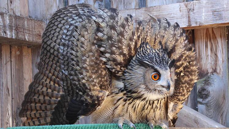 Aber wir haben ihn nicht aufgegeben. Mit Hilfe von homöopathischen Augentropfen hat er seine Sehschärfe zurückgewonnen und ist ein schöner, kräftiger Vogel geworden. Als er völlig fit war, wollten wir ihn auswildern", berichtet Ritz. Doch nach kurzem Rundflug saß Friedolin wieder auf seinem Gehege. Also nochmal das Ganze. Und noch einmal. "Viermal haben wir's probiert. Friedolin ist immer wieder zurückgekehrt."