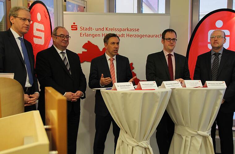 Ende März ist mit einem Sitzungsmarathon zu rechnen. Denn nun soll alles hurtig gehen. Zuerst debattieren die Ausschüsse, dann die Gremien, die entscheiden. Namentlich: die Stadträte in Erlangen und Herzogenaurach, sowie der Kreistag. Es soll öffentlich beraten werden. Details, wie eine vereinte Sparkasse aufgestellt wäre, stellten die Politiker gestern vor.