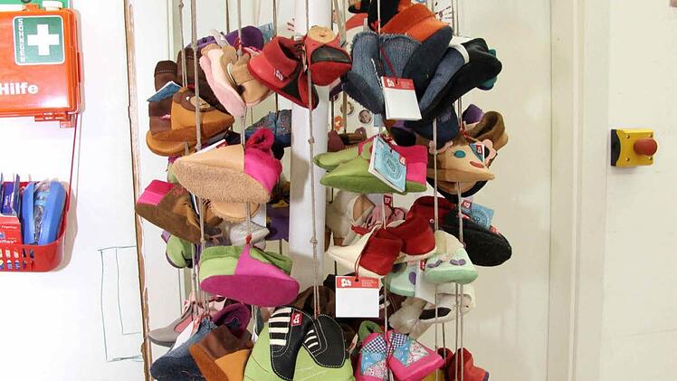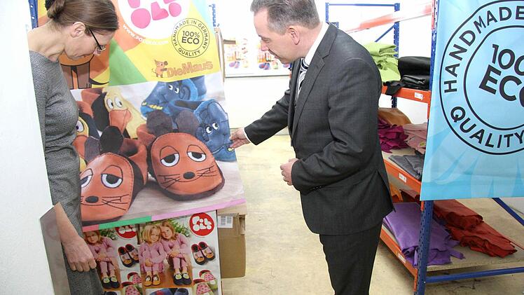 Um kleine Füße ging es beim Firmenbesuch von Landrat Alexander Tritthart in der Pololo-Manufaktur in Oberreichenbach.