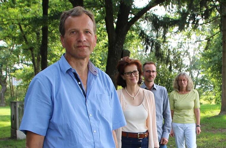 Beim Gespräch im Engelgarten mit den drei Stadträten Peter Winkler, Irmgard Schlehlein und Andreas Popp sowie der  neuen Kreisrätin Lydia Göbel wird klar:  Bürgermeister und etablierte Fraktionen haben mit  kritischen Fragen zu rechnen. Und vor allem mit grünem Widerspruch. Das macht Fraktionssprecher Peter Winkler deutlich: "Wir sind die einzigen, die jetzt mal sagen: Nein!" Er sieht eine "völlige Konzeptlosigkeit bei der Stadtentwicklung", wenn es um das Thema Flächenverbrauch geht.  Womit er gleich beim Leib-und-Magen-Thema der Grünen ist: dem Umwelt-, Klima- und Landschaftsschutz.