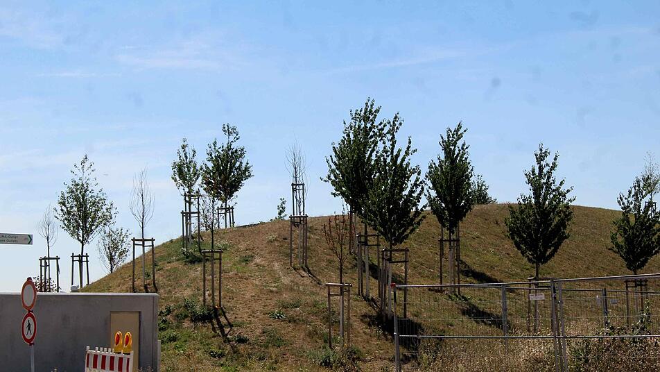 Das benötigen auch die Neuanpflanzungen in den Bauabschnitten, dafür sind ständig Tankfahrzeuge unterwegs. Für eine Reihe von Bäumen auf dem Lärmschutzwall kommt das aber zu spät. "Rund ein Drittel der Bäume muss wohl neu gepflanzt werden, aber das fällt noch unter die Gewährleistung", erklärt Merkel mit Blick auf eine Reihe von entlaubten Jungbäumen.
