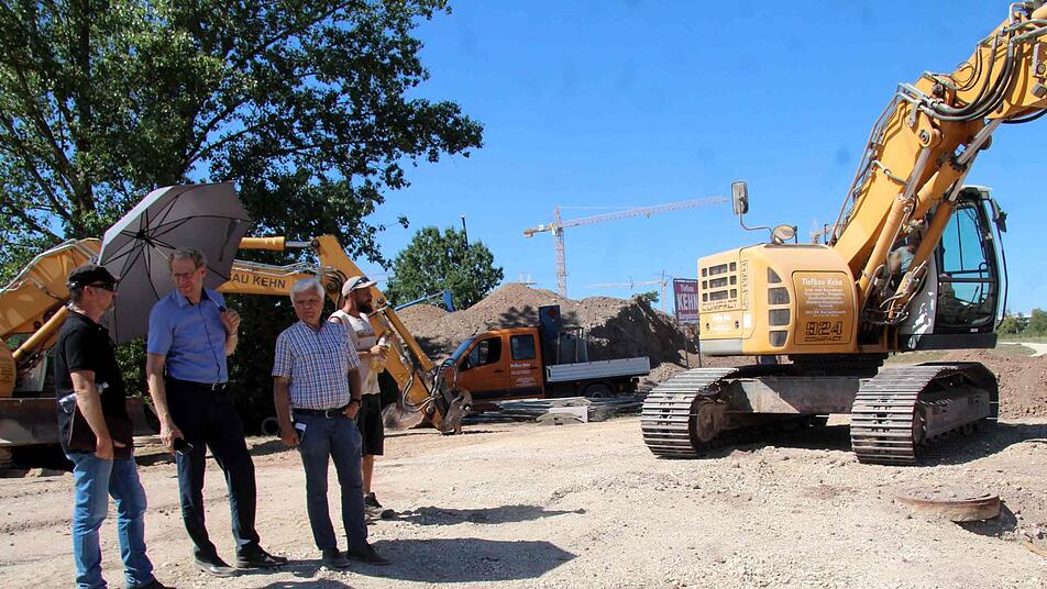 Mit dem Fortschritt der Arbeiten zeigten sich Bürgermeister German Hacker (SPD) und Gerhard Merkel zufrieden, aber die derzeitigen Temperaturen schlauchen auch die Tiefbauer ganz schön. Hitzefrei gibt es natürlich nicht, es geht einiges eben etwas langsamer, die Arbeiter fangen früher an und es steht reichlich Wasser zur Verfügung.