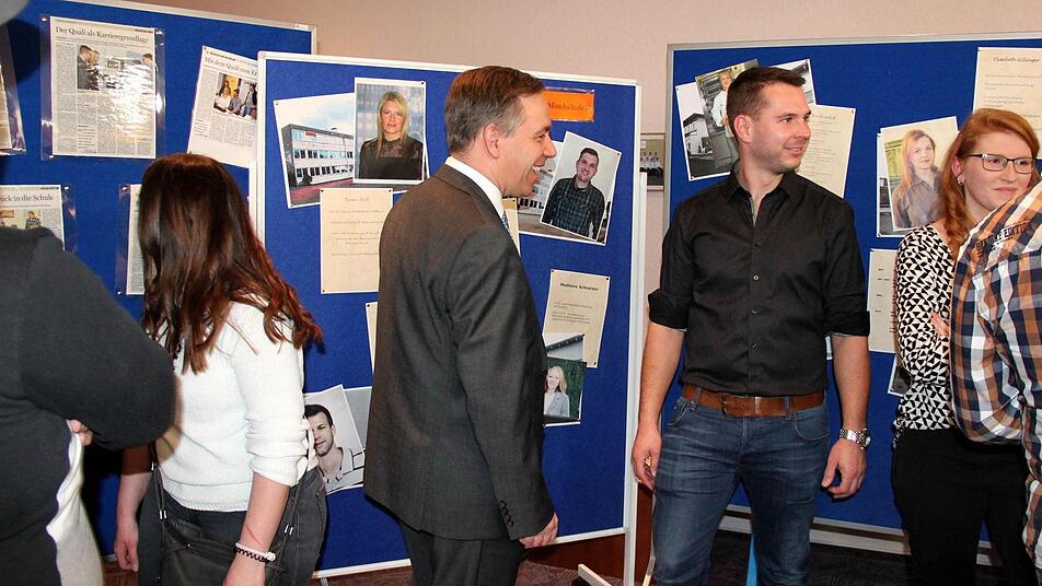 Landrat Alexander Tritthart (CSU) freute sich, die Ausstellung eröffnen zu dürfen. Er habe auch ein Herz für Mittelschulen. "Es geht um die Kinder und nicht um die Eltern", betont er. "Wenn Kinder das machen, woran sie Freude haben und sich entwickeln können, ist das gut so. Es gibt nämlich so viele Möglichkeiten auch nach dem Quali seine Karriere zu machen - wie man hier sieht. Schule, Ausbildung und Beruf soll eine tolle Zeit für jeden Menschen sein!"