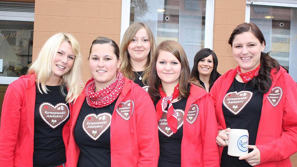 Dann gibt es in Adelsdorf noch die Kerwamadla. "Die Moni sagt, uns gibt es eben", sagen sie lächelnd auf die Frage nach ihrer Funktion. Aktiv mithelfen bei der schweren Arbeit tun sie nicht, doch beim Raustanzen am Sonntag sind sie natürlich mit von der Partie.