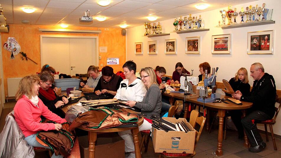 Daran wird im Nebenraum eifrig gearbeitet. "Das sind einige fleißige Mütter und im Moment sogar ein Vater unserer Tänzer, die die Entwürfe des Schneidermeisters und Schnitttechnikers Marcus Bach unter seiner Regie und mit viel Engagement und Fleiß verwirklichen", sagt Semmelroth. "Insgesamt 592 Ösen sind an den 28 Kostümen dran!", ruft eine eifrige Schneiderin.