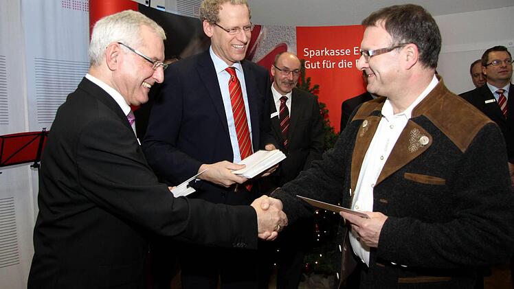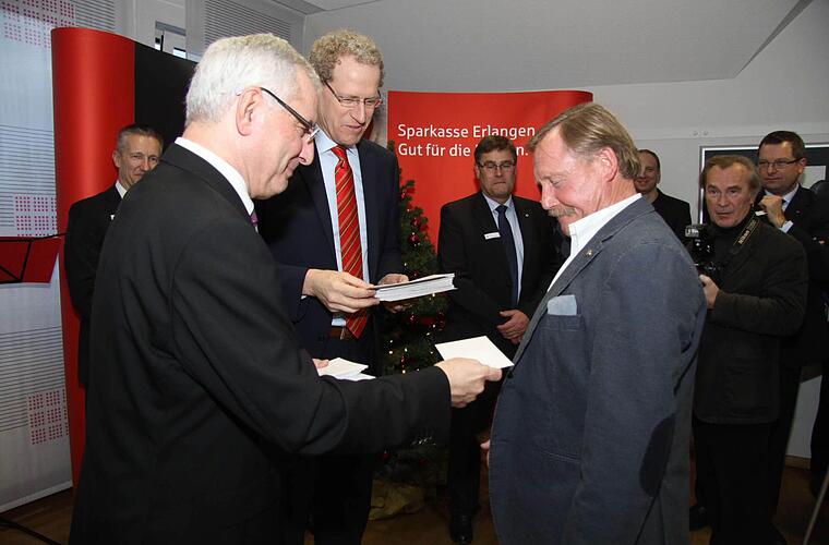 Ein ganzer Sack voller Weihnachtsgeschenke war es zwar nicht, den der Vorstandsvorsitzende der Sparkasse Erlangen mit nach Herzogenaurach gebracht hatte, aber die 55 beschenkten Einrichtungen aus den Bereichen Sport, Kultur, Umwelt, Kirchen und Bildung waren auch mit dem Karton voller Spendenschecks mehr als zufrieden.
