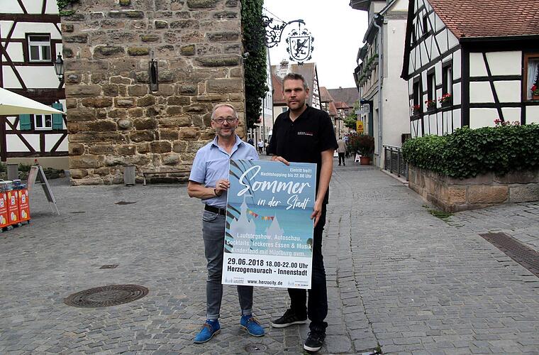 Am kommenden Freitag heißt es bei der Förder- und Werbegemeinschaft (FöWe) "Sommer in der Stadt" und die Hauptstraße wird von 18 bis 22 Uhr zum Laufsteg. Und das im wahrsten Sinne des Wortes, denn vor Männermoden Horbaschek und Röttger Schuh & Mode wird tatsächlich ein Laufsteg aufgestellt. In einem Pressegespräch stellten die Vorsitzenden der FöWe - Walter Dietz, vom gleichnamigen Friseur-Salon und Stefan Müller von Ringfoto Müller - das Programm des unterhaltsamen Abends vor. "Was sich früher weiße oder blaue Nacht nannte, heißt ab sofort und immer am letzten Freitag im Juni ,Sommer in der Stadt‘", erklärte Dietz, denn der Begriff sei Stadt-neutral. "Wir wollen unter dem neuen Motto: Sommer, Sonne, Leichtigkeit vermitteln", umschrieb es Stefan Müller.