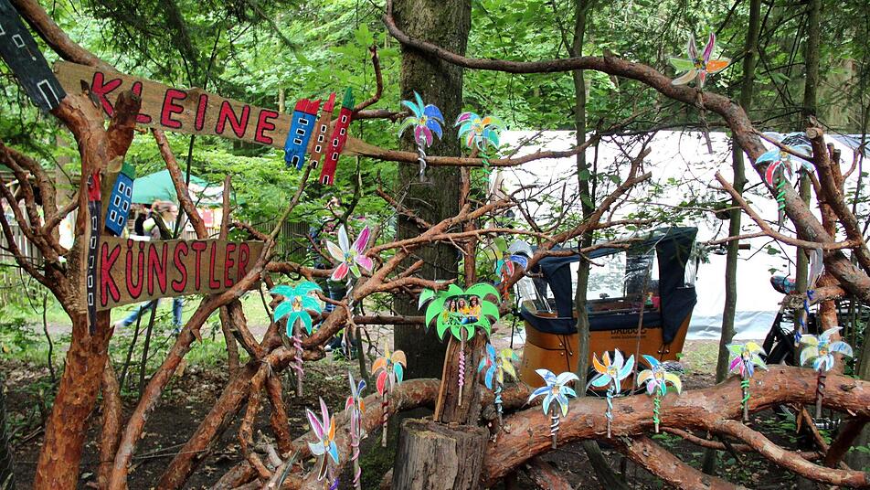 Man findet normalerweise nicht so einfach zu diesem Kindergarten, denn er liegt mitten im Wald. Aber diesmal musste jeder nur dem Menschenzug zum Festplatz folgen. Es wurde gefeiert, gespielt, gesungen, getrommelt und gebastelt.