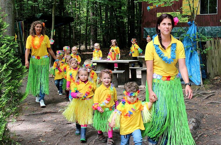 Auch die kleine Emma geht heute gerne in ihren Waldkindergarten und feierte als Hula-Mädchen begeistert mit: "Weil wir immer so viele Spaziergänge machen. Und das Trommeln mit dem Trommel-Dieter ist auch super. Außerdem sind dort alle meine Freunde!"