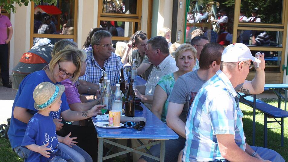 Eltern und interessierten Besuchern vorgestellt wurden die nach rund drei Wochen Arbeit frisch gestalteten Räume bei einem Tag der offenen Tür. Als Überraschungsgäste für den Kindergarten tauchten die Weingartsgreuther Musikanten auf und unterhielten die Gäste mit fröhlichen Melodien. Lisa, Lilly, Lara, Krümel Nick und die anderen Kinder begeisterten sich an den schönen Spielgeräten. "Es ist ganz toll hier und gefällt uns gut", war ihre einhellige Meinung. Wer Lust hatte - auch die größeren Geschwister durften mitmachen - nahm an einem kleinen Malwettbewerb teil. Das Thema war "Natur", das Jahresthema des Kindergartens.