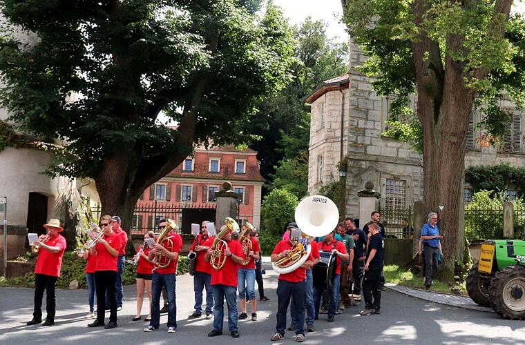 Eine e Schlachtschüssel hatte im Hof des Landgasthofs Weichlein die Kerwa eingeläutet. Die Weingartsgreuther Musikanten stimmten abends mit Polkas, Märschen und fränkischen Kerwalliedli ebenfalls auf die Kirchweih ein und bei frisch gezapftem, süffigen Landbier ließ es sich gut feiern.