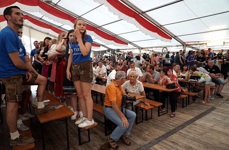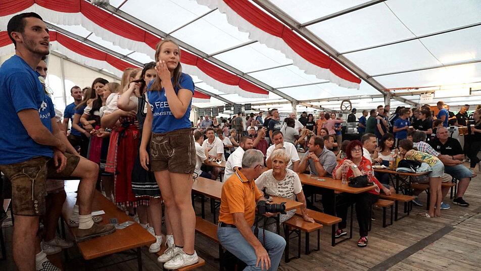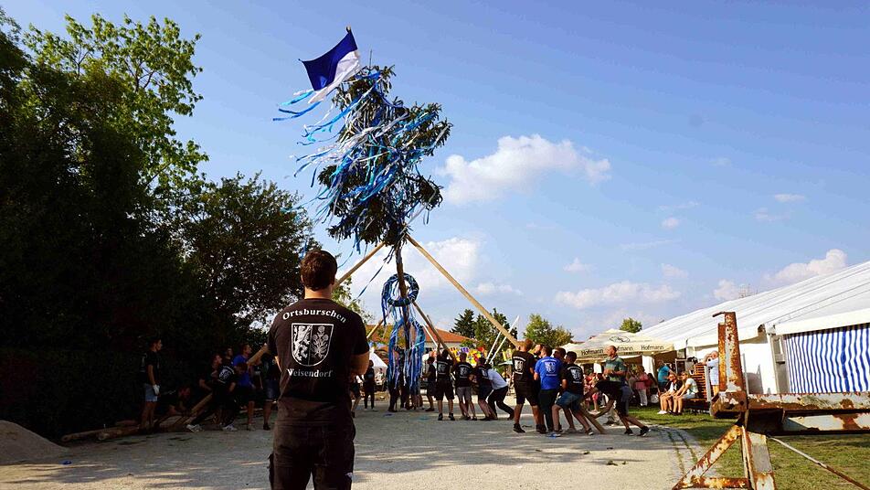Zu der illustren Gesellschaft gesellten sich auch Landrat Alexander Tritthart und mit Heinrich Süß, Karl-Heinz Hertlein sowie Angelika Tritthart alle drei Bürgermeister. Nach dem Schmücken der Baumkrone gab es einen weiteren Halt bei der Wirtin des "Goldnen Engels". Mit Blasmusik ging es dann zum Festplatz. Mit viel Hau-Ruck stellten die Ortsburschen den Baum mit vier Schwalben auf. Nach der schweißtreibenden Arbeit gab es wieder einen langen Partyabend mit der Kultband "Six to Real". Am Sonntag gab es erstmals im Festzelt einen ökumenischen Gottesdienst. Der Seniorenbeirat und die Gemeinde hatten zum Seniorennachmittag eingeladen.