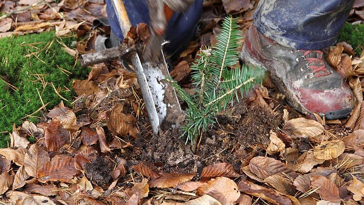 Dafür ist im von Erich Daum betreuten Waldgebiet Forstwirt Gerold Schmidt zuständig. Er hat jahrzehntelange Erfahrung und weiß, wo er den Spaten ansetzen muss, damit die zarten Pflänzchen sprießen. Jetzt ist er jeden Tag mit seinem Spezial-Spaten unterwegs. 5000 Weißtannen-Pflanzen lassen die Bayerischen Staatsforsten in diesem Herbst in der "Unteren Mark" einpflanzen, denn die Pfahlwurzler sind wichtig im Mischwald.
