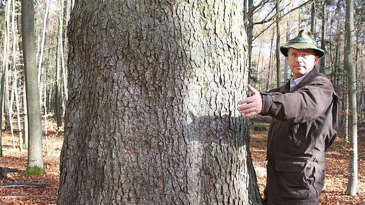 Kein Wunder, dass diese über 300 Jahre alte Weißtanne einer der Lieblingsbäume von Förster Erich Daum ist. Er führt bei Waldbegehungen gerne Kinder aus dem Kindergarten oder der Schule dorthin. Obwohl es vieles zu bewundern gibt in "seinem" Wald. Das Gebiet, für das er zuständig ist, die "Untere Mark", umfasst ein Areal von etwa 2000 Hektar. Die Größe entspricht in etwa 3500 Fußballfeldern. Doch Weißtannen findet man darin wenige, nur etwa zwei bis drei Prozent sind im Bestand.