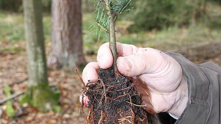 Deswegen haben die Baye rischen Staatsforsten eine Aktion gestartet. Der Bestand der Weißtanne soll durch Nachpflanzungen vermehrt werden. "Waldumbau" hin zum Mischwald heißt die Zauberformel. Bei Baumarten wie der Eiche oder der Buche setzt man dabei auf Naturverjüngung. Ein pragmatisches Mittel, denn der Wald erneuert sich selbst. Ein reiner Fichtenwald kann durch gezieltes Auslichten so in einen Mischwald gewandelt werden. Doch der Bestand der Weißtannen ist - wie auch bei Linden und Lärchen - zu gering, dass darin genügend Samen aufgehen. Hier muss selbst Hand angelegt werden.