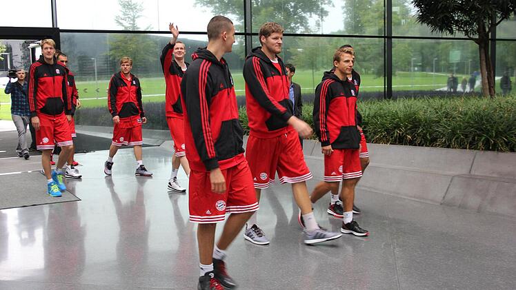 Nur wenige Stunden später wurden auch bei Adidas die Kameras gezückt. Dienstagmittag war der Deutsche Basketballmeister vom FC Bayern München in Herzogenaurach zu Gast. Die langen Kerls um Trainer Svetislav Pešic wurden von etwa 500 Adidas-Mitarbeitern im Laces-Gebäude auf der World of Sports empfangen. Dabei wurde auch gleich das neue rote Heimtrikot der Basketballer offiziell vorgestellt.