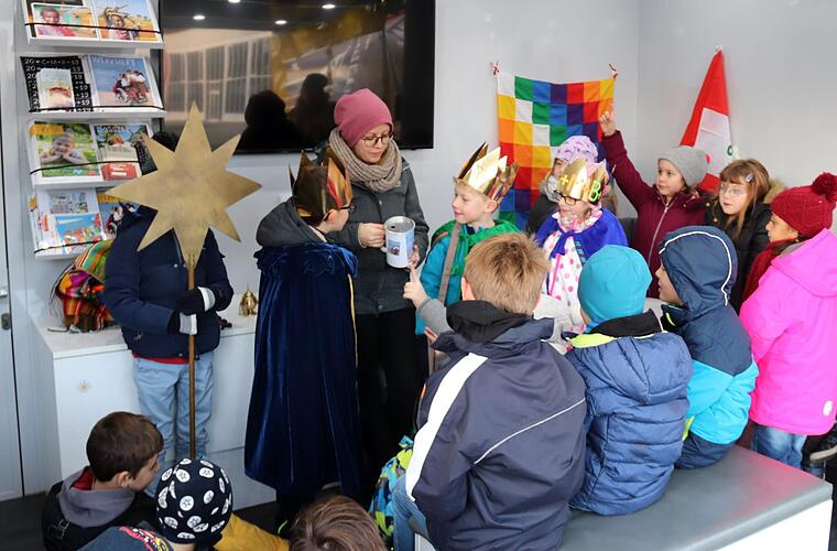 Auf seiner Tour durch Deutschland machte das Sternsingermobil aus Aachen am Donnerstag Halt an der Adelsdorfer Grundschule. Das Mobil informiert über die Arbeit des Kindermissionswerks "Die Sternsinger", die aktuelle Sternsingeraktion und über Themen der "Einen Welt".