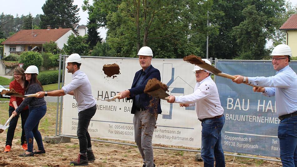 Es ist ein sportliches Ziel: Im September 2021 soll der Kindergartenneubau in Zentbechhofen fertig sein. Auf dem Gelände, auf dem jetzt der offizielle Spatenstich stattfand, stand noch vor nicht allzulanger Zeit die ehemalige Schule aus den 1960er Jahren.