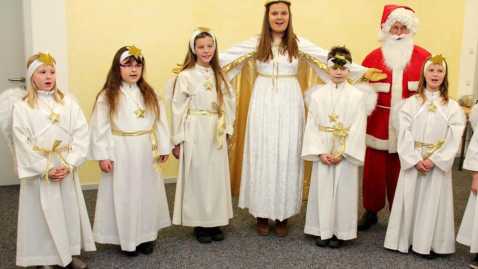 Am Freitag stellte sich Christkind Melissa zusammen mit seinen sechs himmlischen Begleitern und dem Weihnachtsmann im Adelsdorfer Rathaus vor. Der ganz aufmerksame Zuschauer fand diesmal auch ein männliches Engelchen unter den kleinen himmlischen Boten.