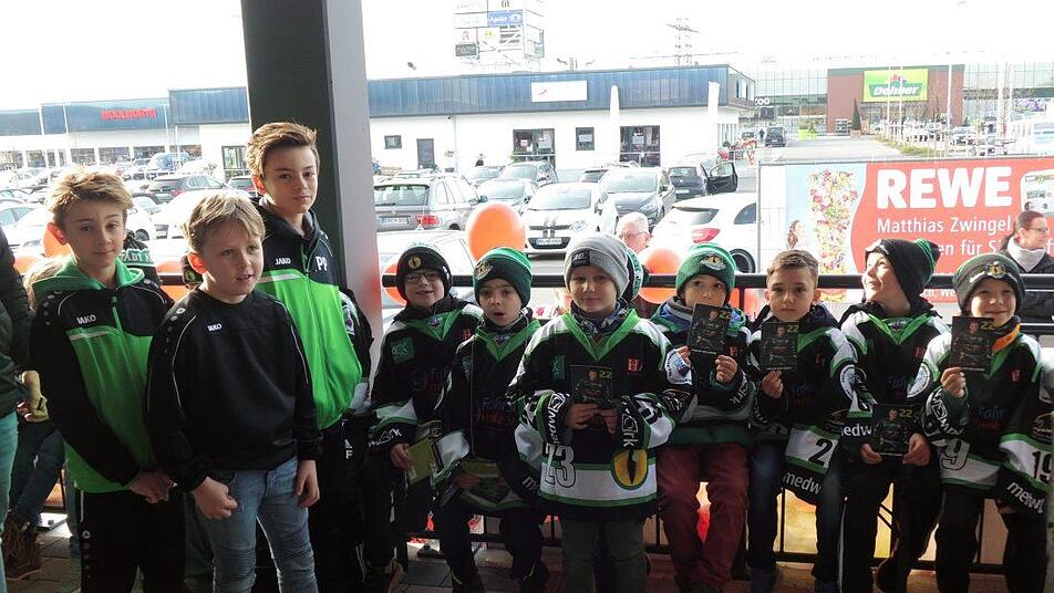 Am Samstag schließlich wurde der Verkauf von Alben und Stickern mit einer Kick-Off-Party im Rewe-Markt eingeläutet. Von den 4 Euro für ein Album geht die Hälfte an den HEC, eine Tüte mit fünf Stickern kostet den Sammler 90 Cent. "Wir machen das heute aus zwei Gründen", so Philipp Seelmann, Trainer der U9 Eishockey-Mannschaft. "Zum einen wegen des Stickeralbums. Zum anderen um ein Zeichen zu setzen, dass Kinder Sport sehr lieben und uns das neue Eisstadion sehr helfen würde. Für das Trainerteam, die Kinder und die Eltern würde vieles leichter werden. Ein neues Stadion wäre rundum geschlossen, so dass man sich als Zuschauer wohler fühlt. Bei uns pfeift der Wind durch. Wenn es richtig kalt ist, kommen weniger Leute."