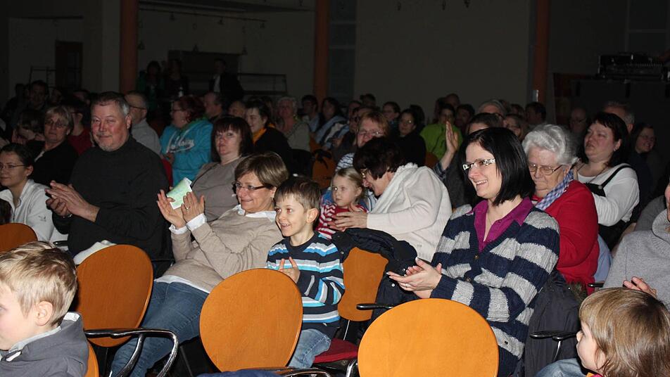 Mitarbeiter und Bewohner der Barmherzigen Brüder in Gremsdorf "Glüwi" auf die Bühne im Gremsdorfer Forum.